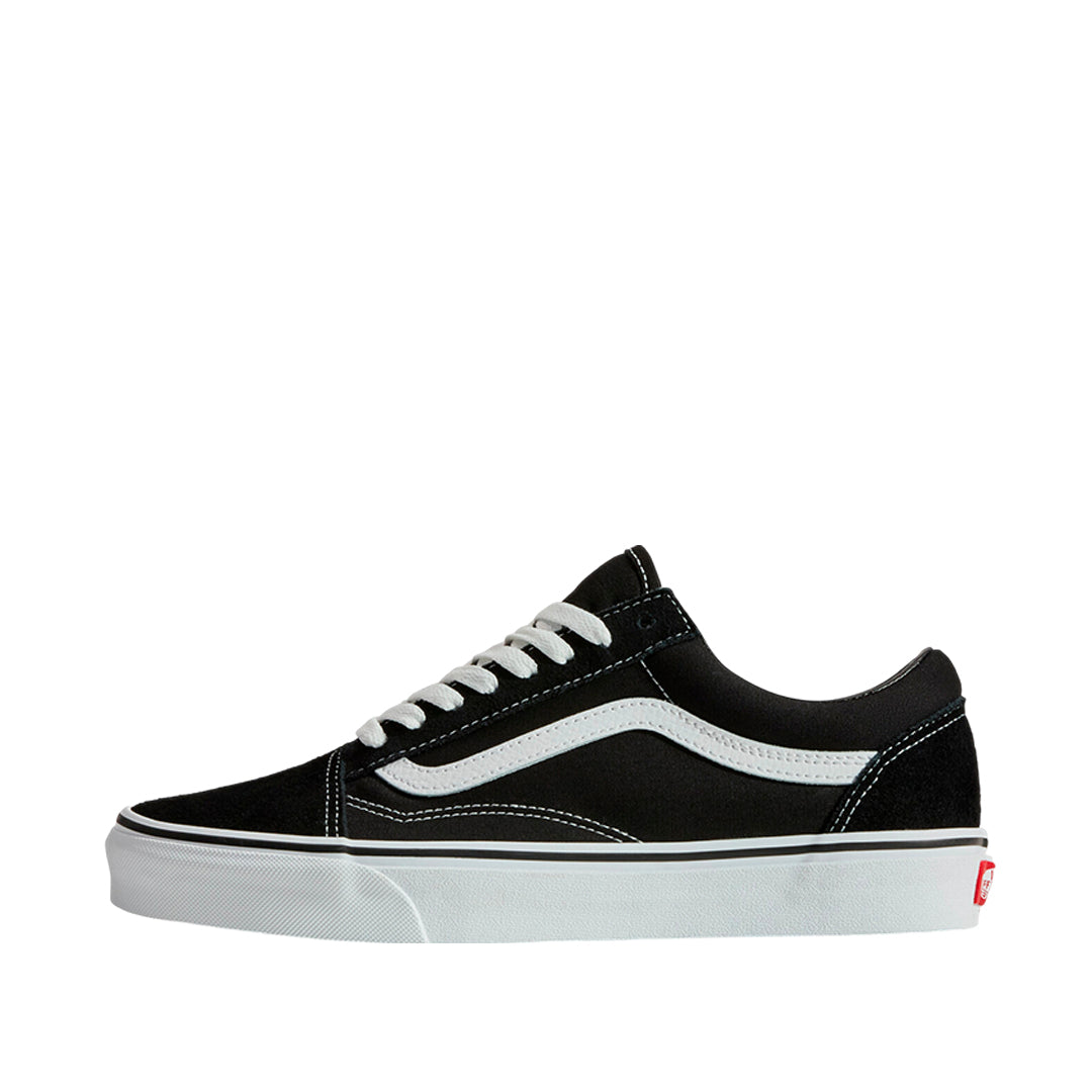Tennis Old Skool unisex en negro y blanco, confeccionados en ante y lona duradera. Incorporan puntera reforzada, cuello acolchado para mejor soporte y la clásica suela waffle de caucho que garantiza agarre y resistencia. Diseño icónico con la banda lateral Sidestripe™.