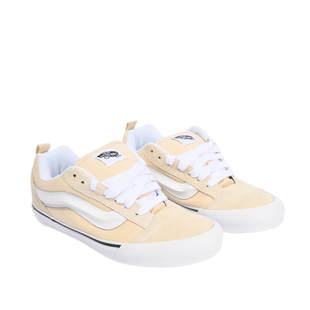 Tennis Knu Skool unisex color crema y blanco, marca VANS. Suede con Sidestripe™ 3D acolchada y suela waffle.